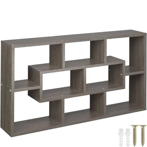 Tectake Étagères Étagère Murale Kassandra Avec 8 Compartiments En Bois MDF Effet Chêne