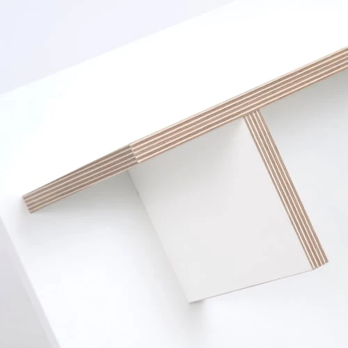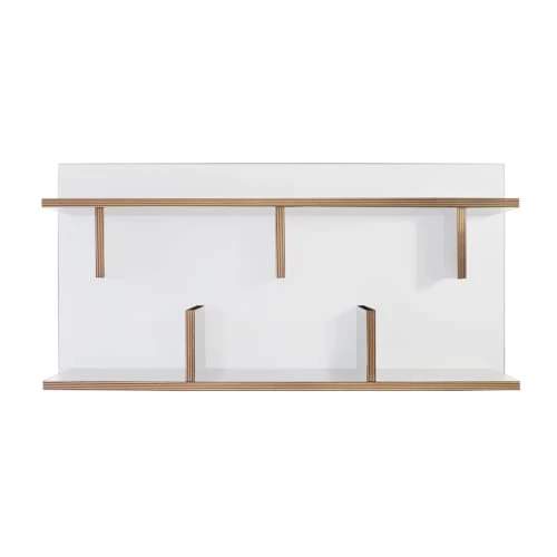 Epurée et élégante, BERN est bien plus qu’une étagère car elle fonctionne également comme un élément décoratif en soi. Son esthétique joue avec la géométrie fragmentée de la pièce qui fait ressortir le contraste entre le fond noir ou blanc et les étagères en contreplaqué.