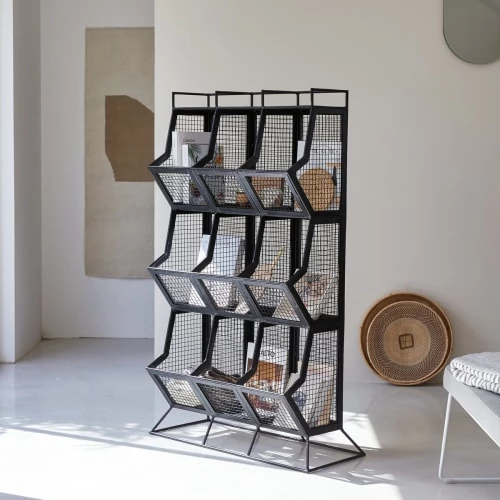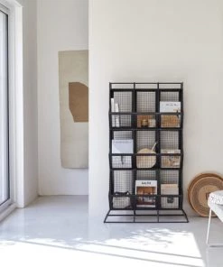 Etagère à poser en métal grillagé.Info : 9 cases (H 34,8x L 22,5 x P 34cm)3 compartiments de rangement (H 7x L 22,5 x P 21cm)Informations Produit :Matière : métalDimensions : H 135 x L 82 x P 33.5 cmPoids : 41 kg environAcheter un meuble Tikamoon, c’est acheter une pièce exclusive, dessinée avec passion par nos équipes. Concepteur de mobilier d’intérieur, Tikamoon propose des collections exclusives de meubles en bois massif.