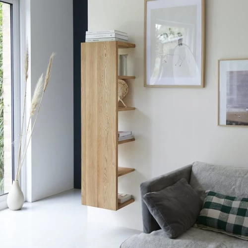 L’étagère murale en chêneFSC® Easy de la marque TikamoonVéritable meuble de rangement, cette bibliothèquevous permettra de ranger objets décoratifs, livres ou accessoires multimédiagrâce à ses 5 tablettes *.Son élégance caractérisée par son design minimaliste apporteraà votre salon une touche de modernité.Son bois veiné àteinte naturelle procurerontà votre pièce un côté chaleureux et authentique.* 5 tablettes H 24x L 35x P 27cm – épaisseur planche : 2 cm/ 2 systèmes d’accroche (1ère et 6ème tablettes)Informations Techniques :Matière : chêneDimensions : H 137x L 35x P 30cmPoids : 21kgAcheter un meuble Tikamoon, c’est acheter une pièce exclusive, dessinée avec passion par nos équipes. Concepteur de mobilier d’intérieur, Tikamoon propose des collections exclusives de meubles en bois massif.