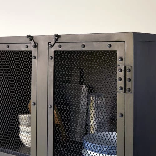 Vaisselier en métal de couleur noire.Info : 2 portes grillagées ouvrant sur 4 niveaux (H max 40,5 – H min 37 x L totale 65 – L porte 30 x P 30,5 cm) / H pieds 8,5 cmInformations Produit :Matière : MétalDimensions : H 175 x L 70 x P 35 cmPoids : 52,5 kg environAcheter un meuble Tikamoon, c’est acheter une pièce exclusive, dessinée avec passion par nos équipes. Concepteur de mobilier d’intérieur, Tikamoon propose des collections exclusives de meubles en bois massif.