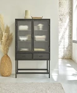Bois Dessus Bois Dessous Vaisseliers Vaisselier En Métal Et Verre Ondulé 2 Portes 2 Tiroirs
