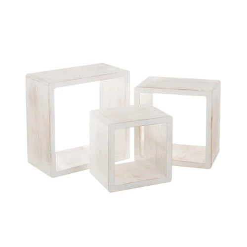 Wadiga Set De 3 Étagères Murales En Bois Blanchi – 38x38x20cm