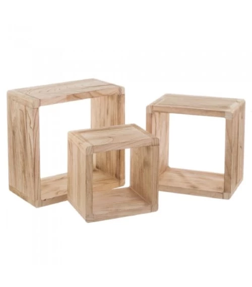 Set composé de 3 étagères murales en bois de 3 dimensions différentes en bois de Palownia. Dimensions: 38x38x20cm / 32x32x20cm / 26x26x20cm – Couleur: Bois – Matière: Bois de Paulownia