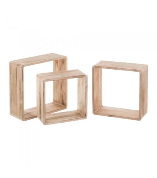 Wadiga Étagères Set De 3 étagères Murales En Bois De Palownia 30x30x12cm