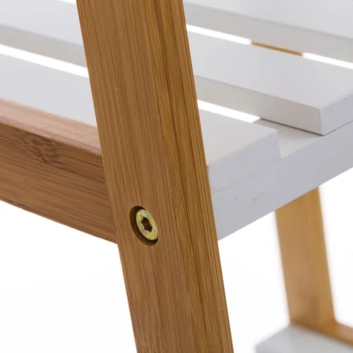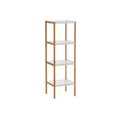 Étagère de salle de bain avec structure en bambou et étagères en bois MDF blanc. Espace entre les étagères: 27.5cm.Dimensions: 33x34x110cmCouleur: Bambou et blancMatière: Bambou et MDF