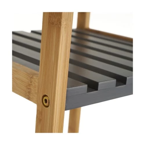 Étagère de salle de bain avec structure en bambou et étagères en bois MDF gris. Espace entre les étagères: 27.5cm.Dimensions: 33x34x80cmCouleur: Bambou et grisMatière: Bambou et MDF